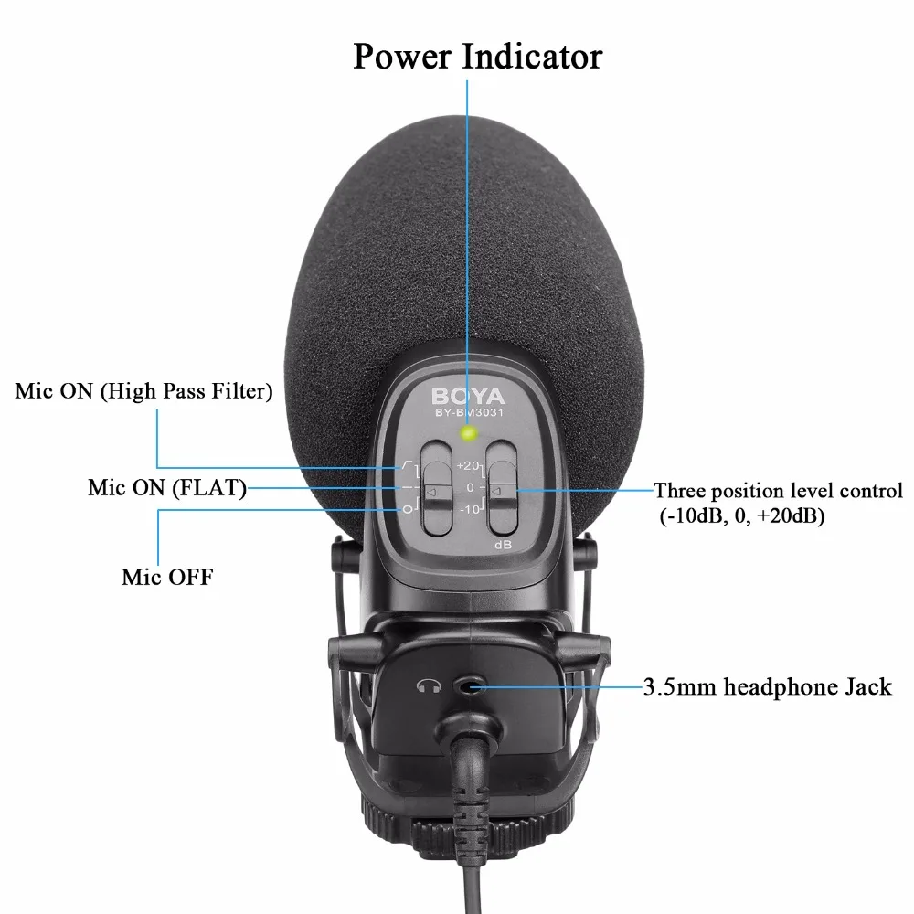 - Product name : BOYA BY-BM3031 On-Camera Shotgun Microphone for Canon EOS Nikon Pentax Panasonic DSLR Video Camera