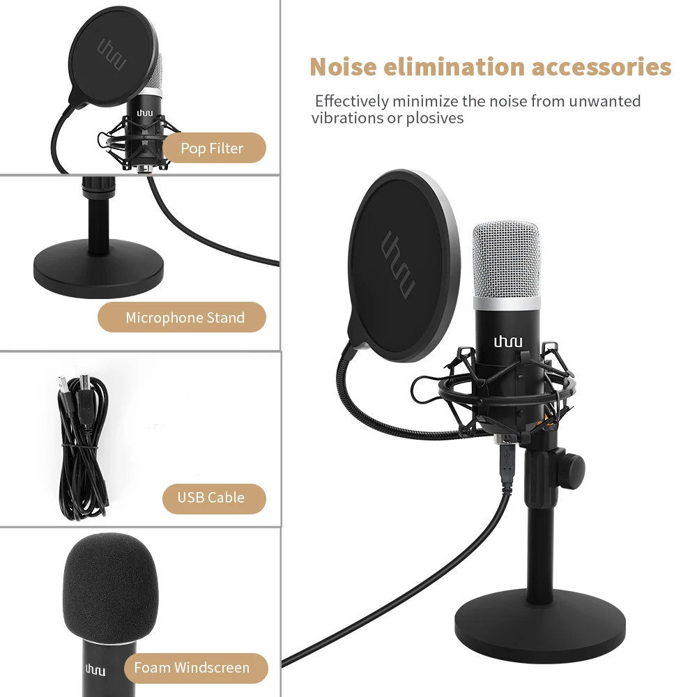 UHURU USB Microphone Streaming Podcast PC Microfono Professional 96KHZ/24Bit Studio PC Mic for Skype Youtube Gaming Recording : Click Here